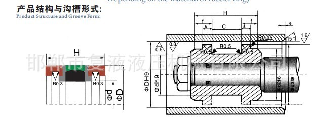 兩個導向環、兩個擋圈和一個密封環由聚四氟乙烯復合材料制成,彈性體由丁腈膠制成。